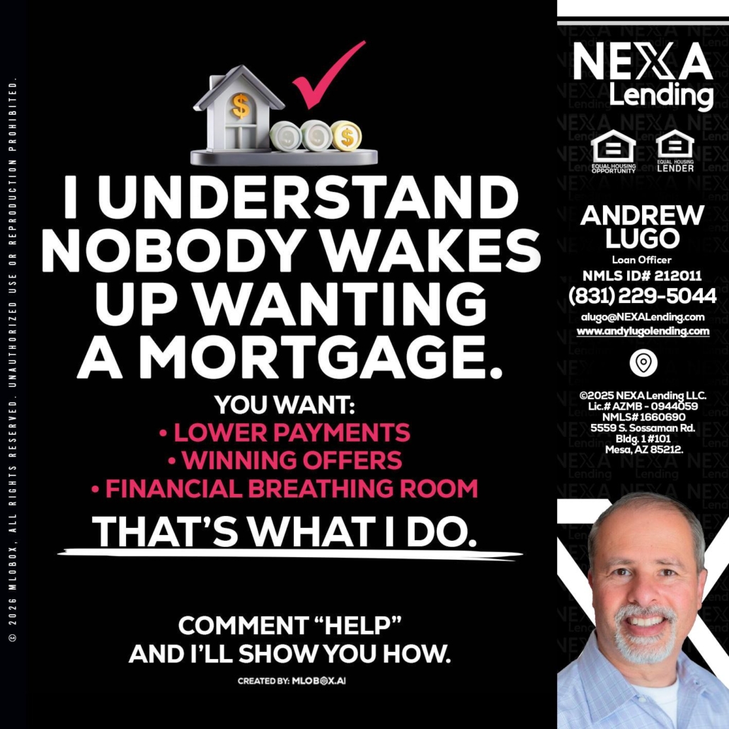 Hi, my name is Andrew Lugo. I’m a Loan Officer with NEXA Lending LLC., offering personalized mortgage solutions, fast customized quotes, great rates and service with integrity.