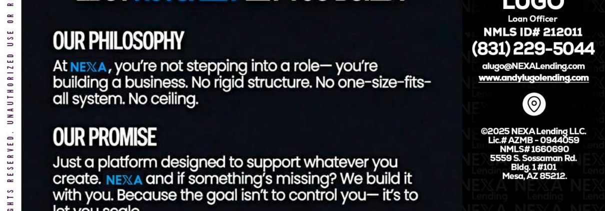 NEXA INSIGHTS - Andrew Lugo -Loan OfficerHi, my name is Andrew Lugo. I’m a Loan Officer with NEXA Lending LLC., offering personalized mortgage solutions, fast customized quotes, great rates and service with integrity.